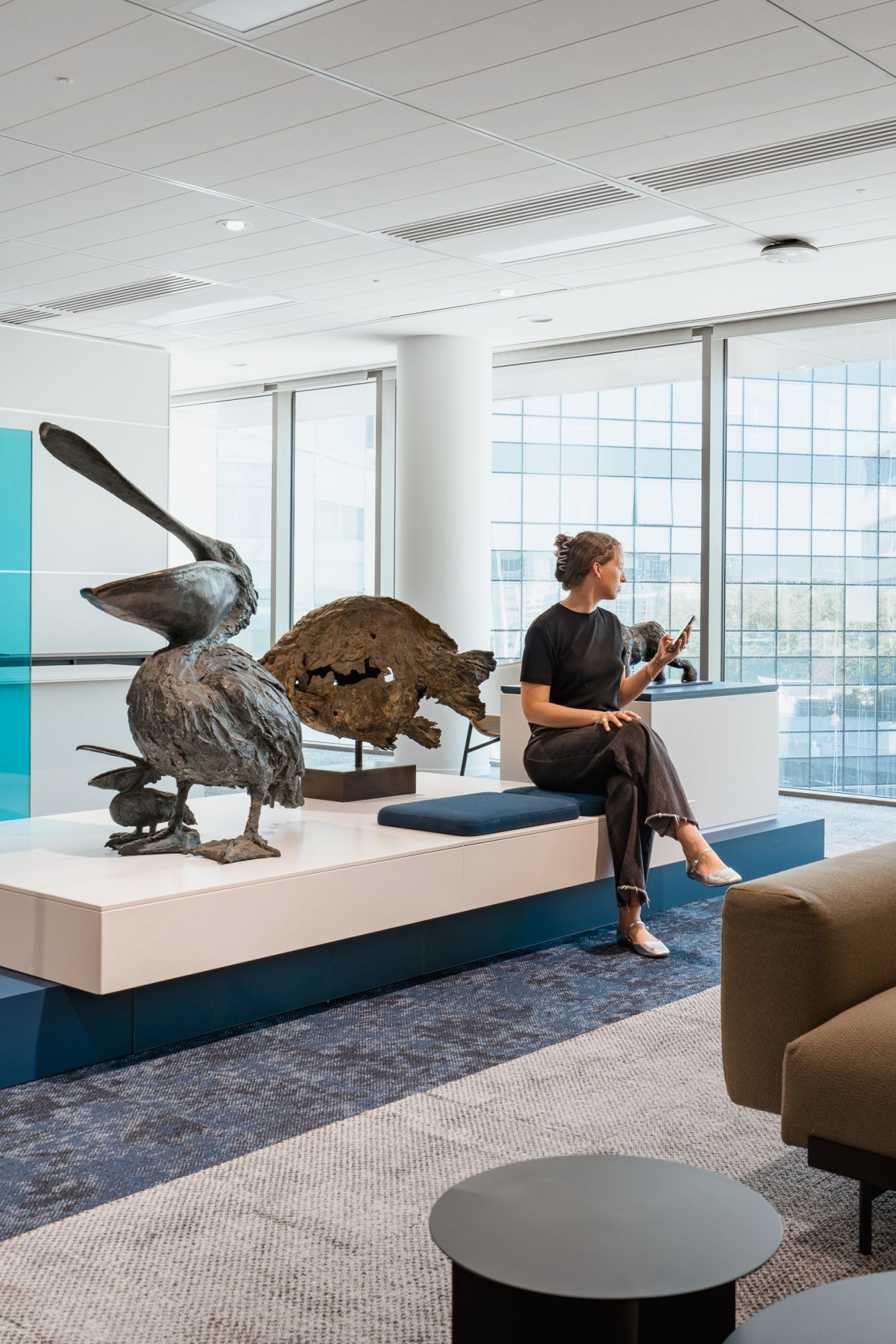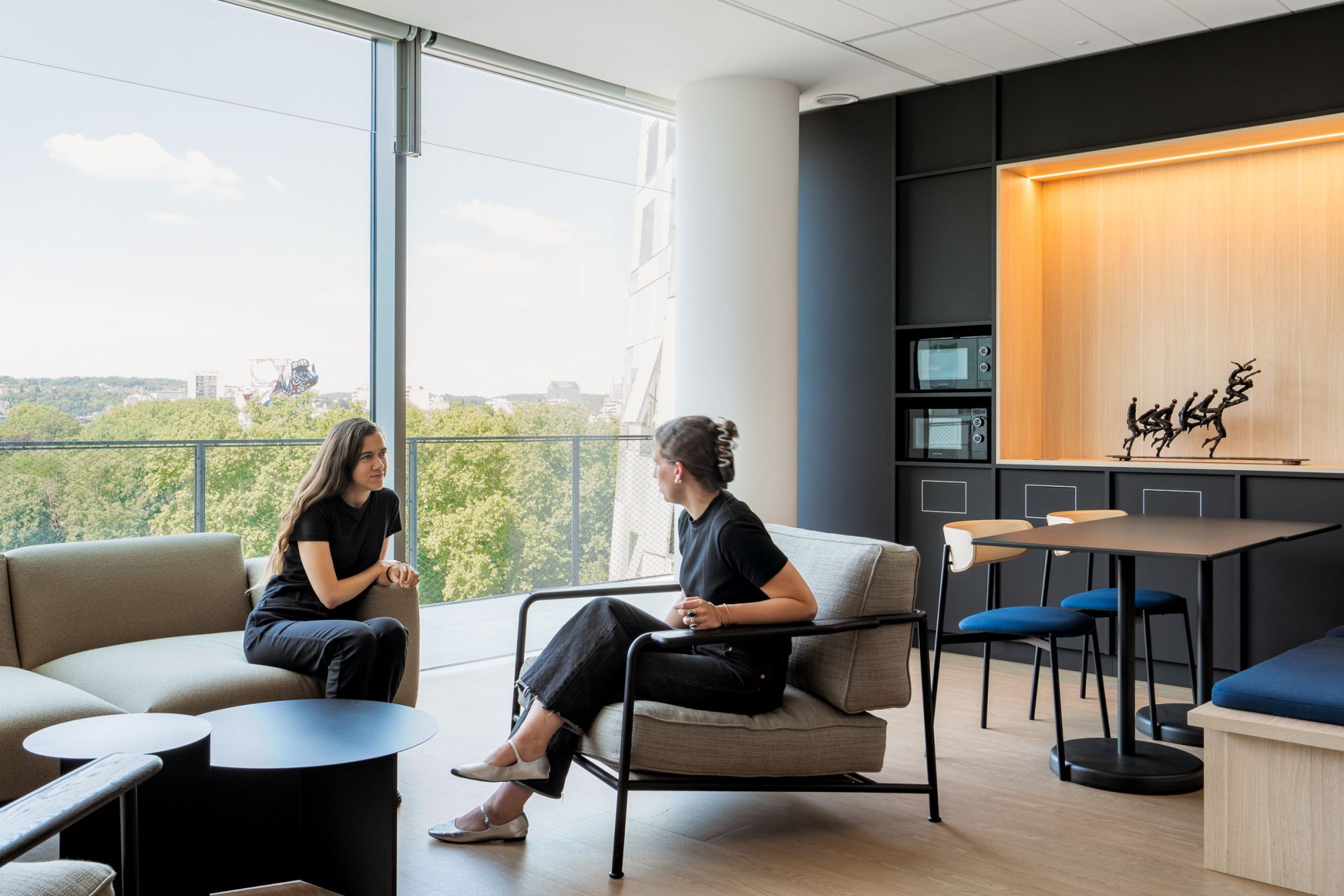Les contraintes architecturales de la tour Keiko — plateaux anguleux, espaces interstitiels — ont été transformées en opportunités créatives. Ces zones ont donné naissance à des podiums multifonctions, à la fois supports de scénographie, espaces de travail informels et lieux de rencontre, mêlant hospitalité et usage.