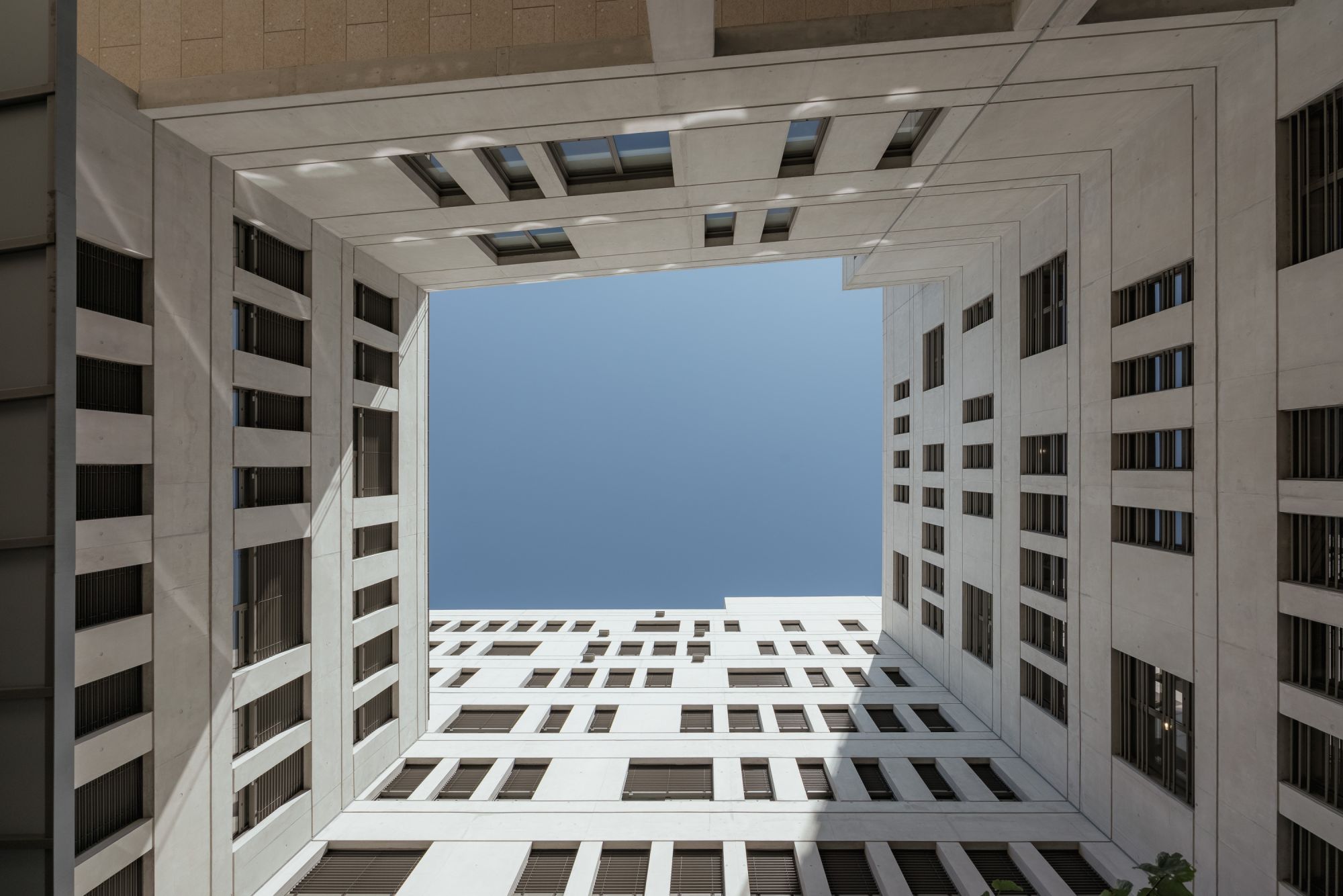 Le projet conçu par les agences Kardham Architecture et Vincent Lavergne Architecture et Urbanisme propose deux visages. Côté rue, le bâtiment se montre sobre, minéral, en cohérence avec l’architecture bioclimatique développée au sein des Fabriques où la qualité de vie est un pilier de la conception. Puis, à l’intérieur, l’ouvrage se déploie autour d’un patio central traversant, ouvert sur un vaste cœur d’îlot arboré, à l’abri des fortes chaleurs et du vent. Créant un cocon de lumière, ces espaces où l’on respire, contribuent à la qualité de vie au travail des collaborateurs. Les terrasses de travail, les bureaux et les espaces informels de rencontres offrent toutes les qualités d’un immeuble de bureaux contemporain.