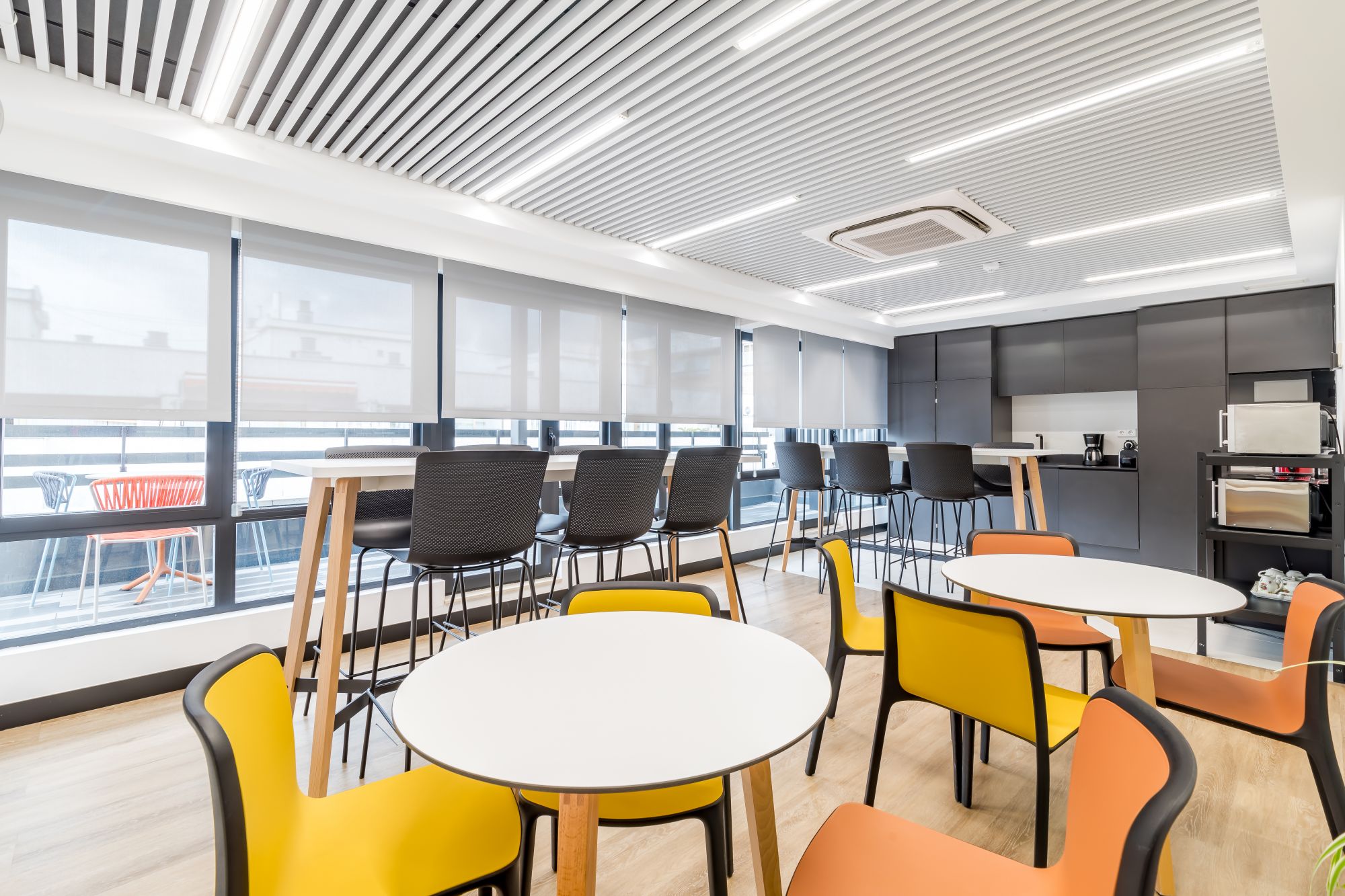 En outre, ce projet s'est concentré sur la création d'espaces supplémentaires qui encouragent le confort et la collaboration entre les employés. Un bureau élégant et amusant offre un lieu de détente et d'interaction, tandis qu'une magnifique terrasse offre une oasis extérieure pour des réunions informelles ou simplement pour profiter du soleil madrilène.